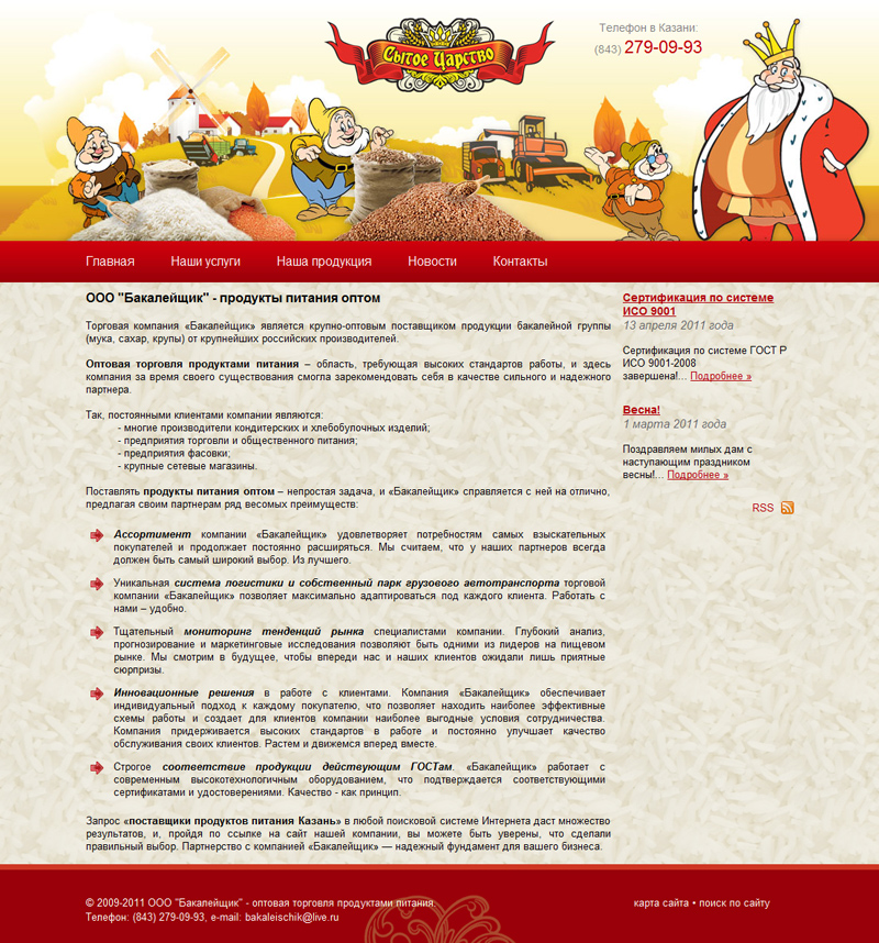 Основной сферой деятельности компании являются оптовые продажи муки, фасованного сахара, макаронных изделий и широкий ассортимент различных круп под торговой маркой "Сытое царство"™.