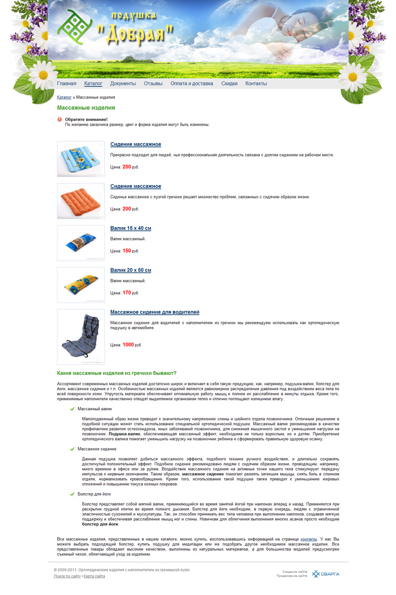 Сайт-каталог изделий с наполнителем из гречишной лузги и пряно-ароматическими травами ( гречишные подушки, матрасы и массажные изделия с гречишной шелухой).