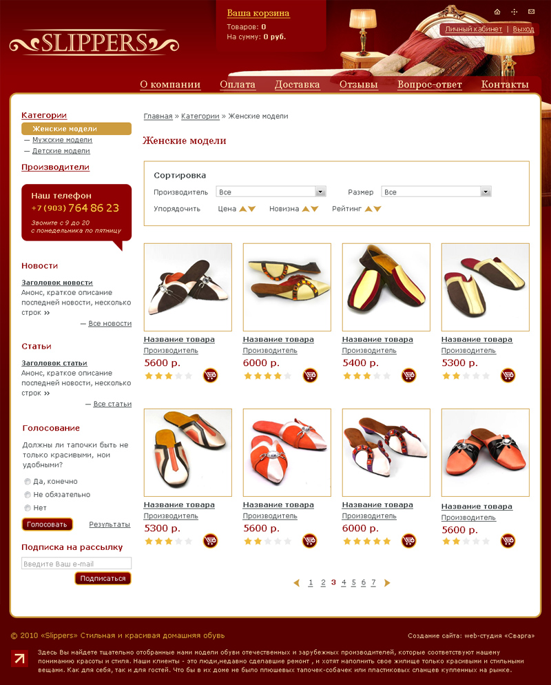 Я сразу созвонился-списался с ними. Обрисовал свои цели и задачи. Сразу мне был назначен персональный менеджер, который оперативно и с высокой долей профессионализма составил техзадание и договор. Все выполнялось строго по графику, никаких дополнительных работ (в виде разводок) не предлагалось. Устроило все: и разработанный дизайн, и техническая часть. Понимали меня с полуслова. Все это и есть Профессионализм с большой буквы. Очень рад, что нашел именно эту компанию. Очень всем благодарен: и другу, и Сварге. Алексей Сурага, руководитель проекта Slippers