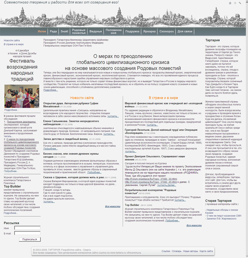 Сайт наполняется командой ресурса "Тартария.ру", а поддерживается сотрудниками web-студии "Сварга".