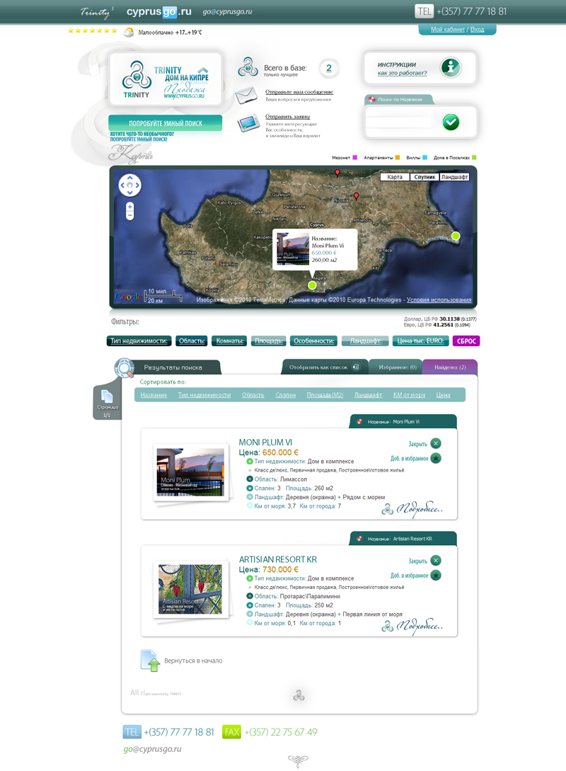 5. В интерфейс удобно и органично встроено окно с картой GoogleMap, на которой отображаются интересующие пользователя объекты. Стандартная всплывающая подсказка на карте заменена более привлекательной, удобной и экономящей пространство.