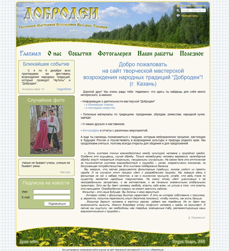 Творческая мастерская "Добродеи" (г. Казань) занимается возрождением народных традиций.
