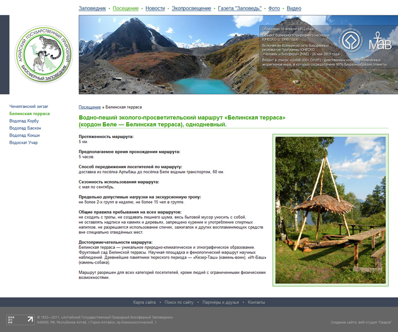 Задача сайта: дать максимум информации о заповеднике пользователям, разместить фотографии, видео, статьи о АГПЗ, получить обратную связь от пользователей.