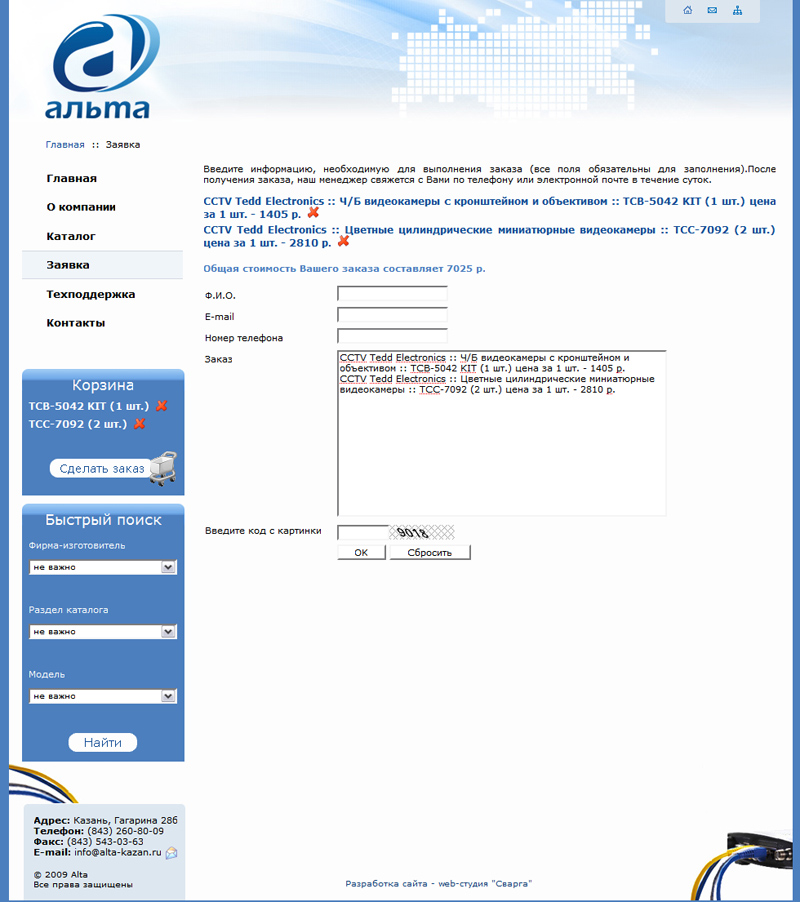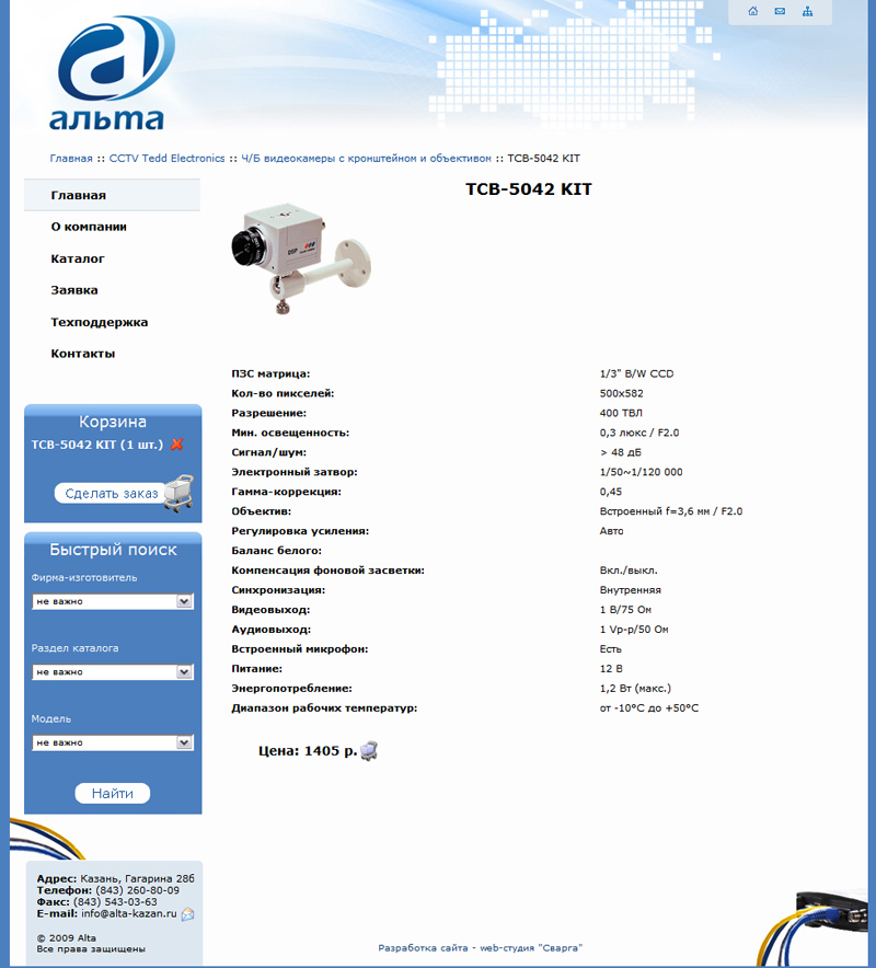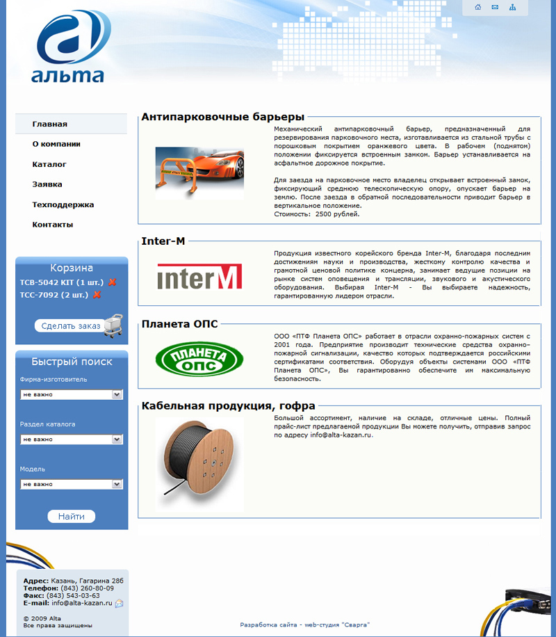 Задача сайта: представительство компании в Интернете, размещение информации о товарах.