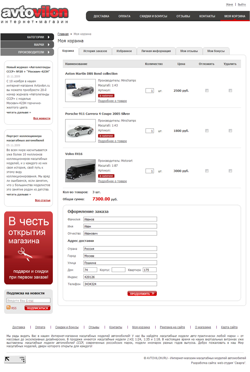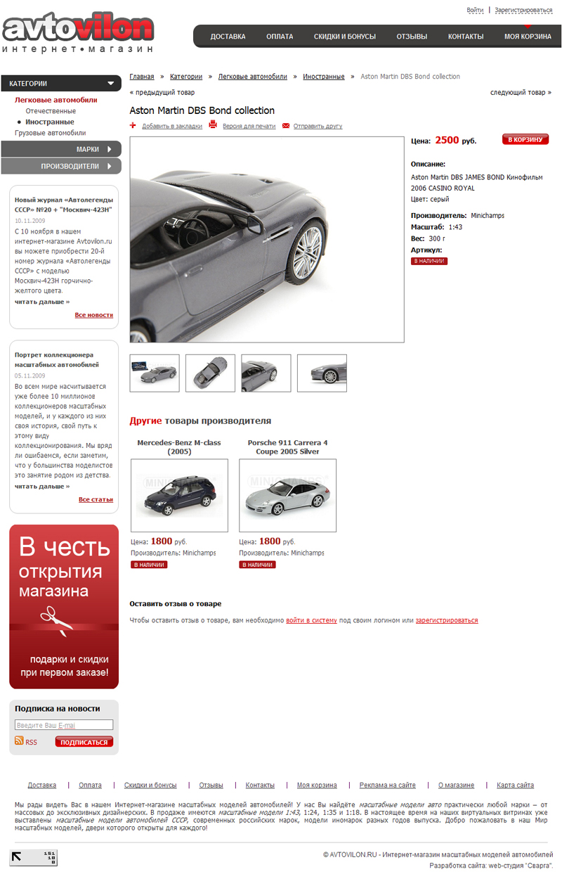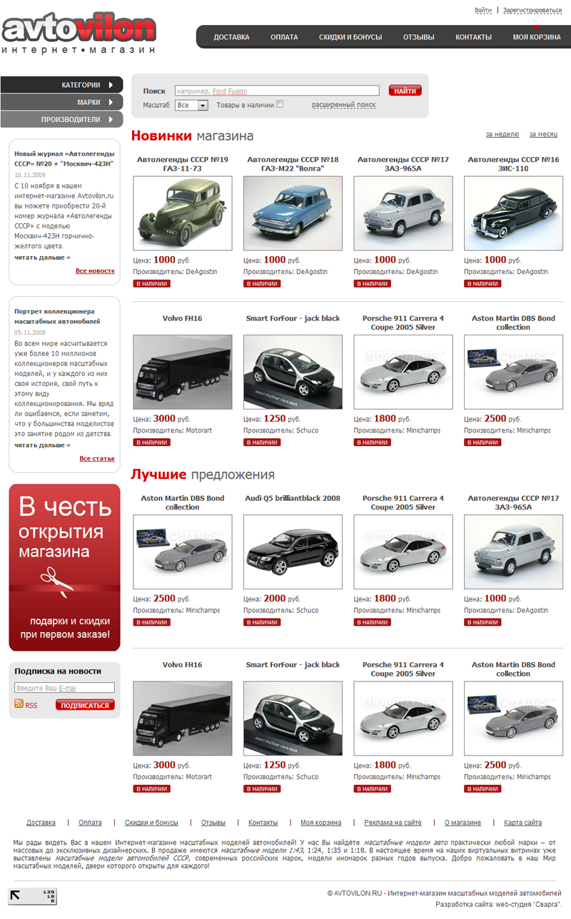 Интернет-магазин Avtovilon.ru специализируется на продаже масштабных моделей автомобилей и предназначен для таких порой привередливых покупателей, как коллекционеры миниатюрных моделей.