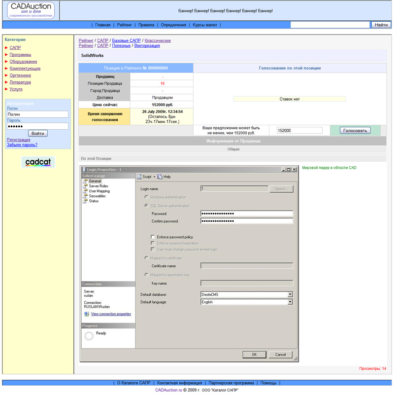 Отзыв Высокий профессионализм, качество работы, прекрасное отношение к заказчику. Знание темы на лучшем международном уровне. Выполнен очень непростой проект по аукциону в интернете (вся техническая составляющая) для развития первого русскоязычного проекта "Каталог САПР" в полном соответствии с техническим заданием и пожеланиями. Дополнительно сделано великолепное меню администратора для управления сайтом. Рассчитываю на долгосрочное сотрудничество. Павел Латышев, ген. директор ООО "Каталог САПР", автор и руководитель проекта.