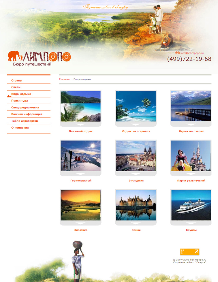 Московское бюро путешествий "Лимпопо" специализируется на семейном отдыхе и предлагает огромный выбор путёвок во все уголки мира.
