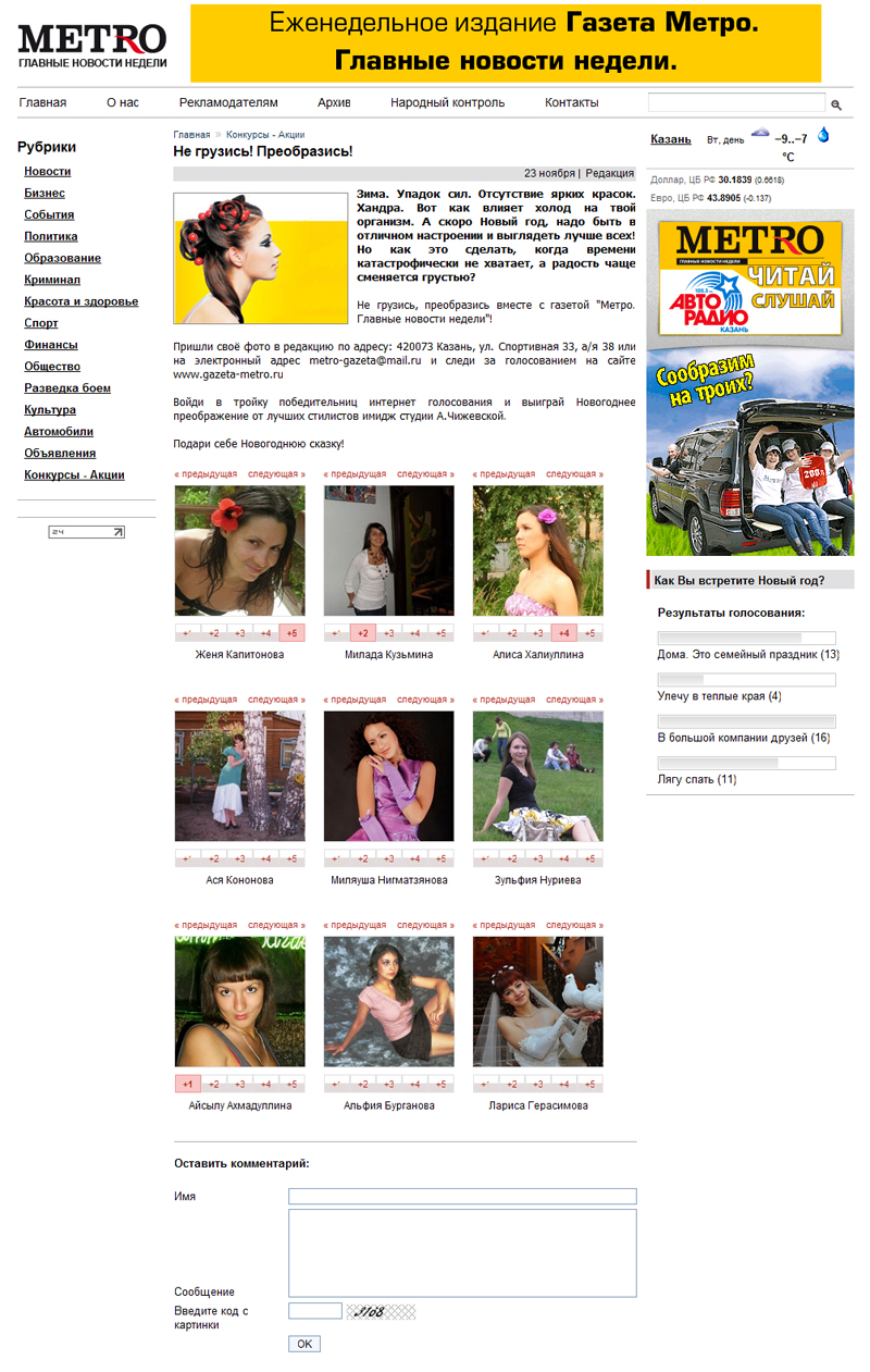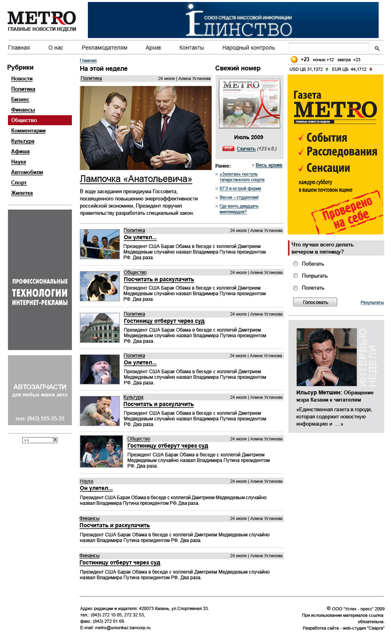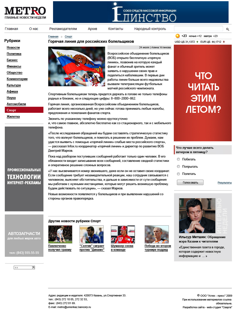 На сегодняшний день это одно из самых удачных изданий для размещения рекламы, поскольку газета "Метро" попадает в руки практически каждого жителя Казани.