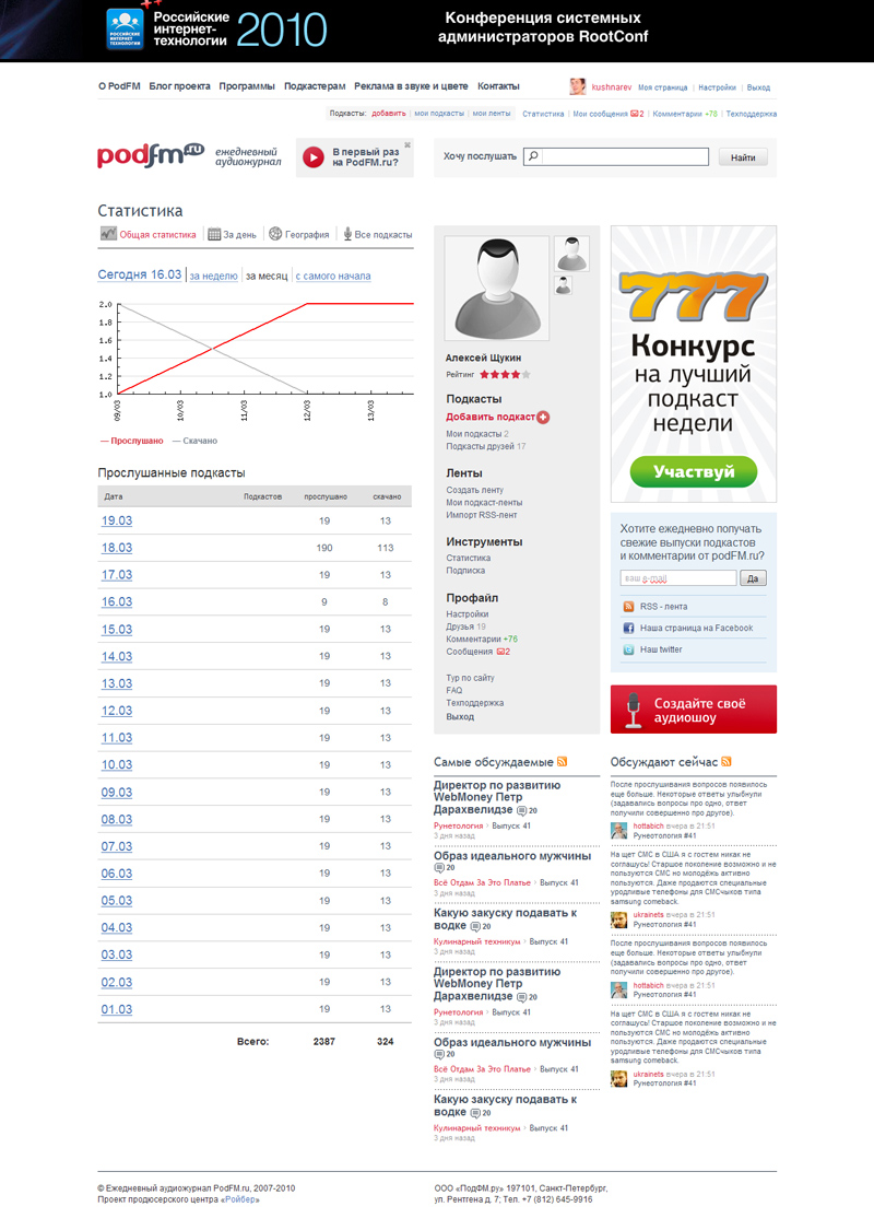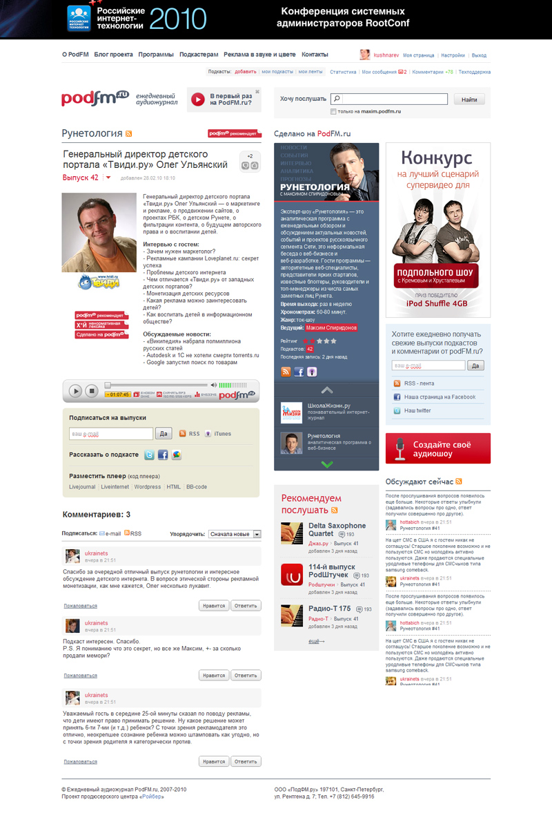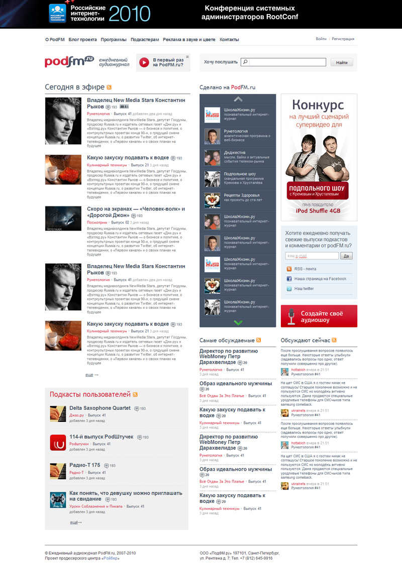 С PodFM.ru сотрудничают именитые подкастеры, известные радиоведущие, сценаристы и эксперты — все те, кто знает и понимает, как создавать качественные программы, интересные широкой аудитории. Список профессионалов постоянно пополняется, и зайдя в следующий раз на PodFM.ru, Вы можете найти аудиошоу Вашего любимого ведущего.
