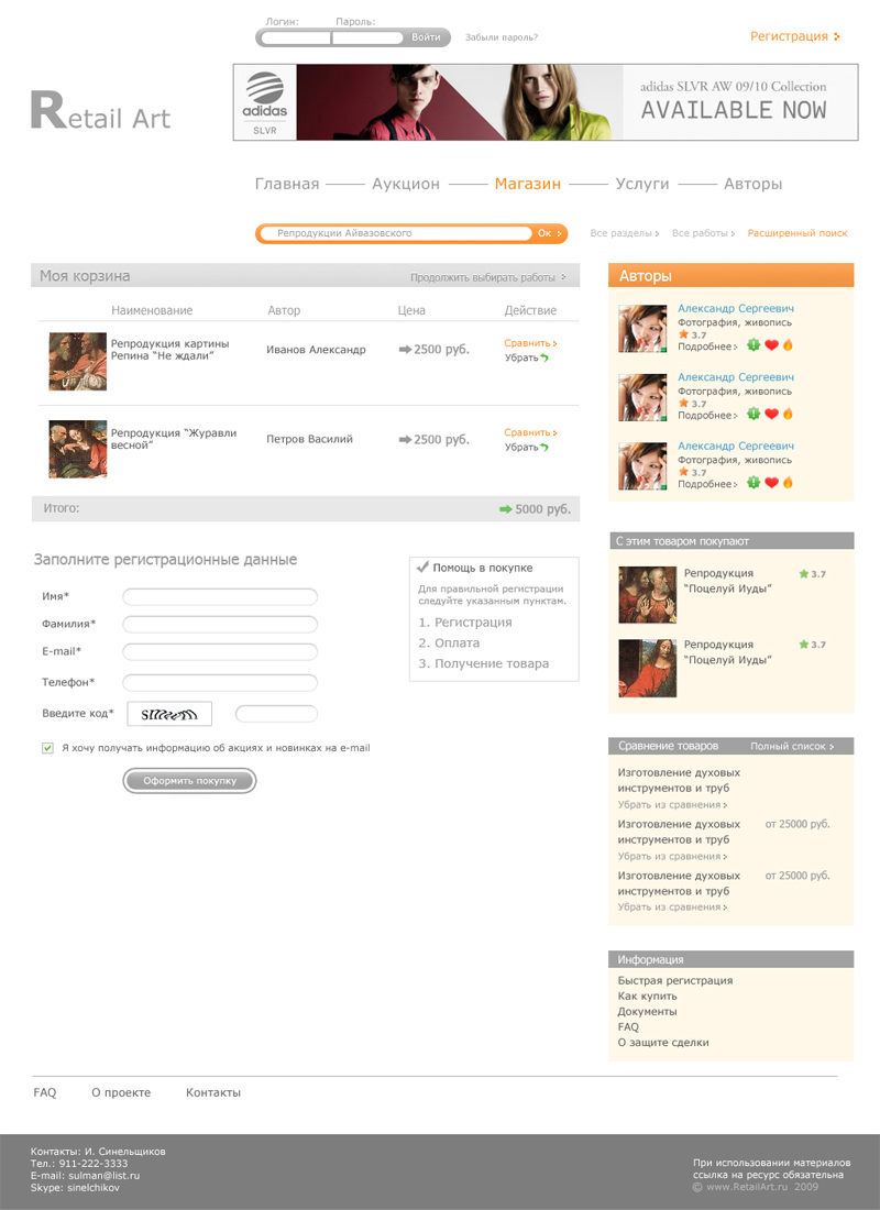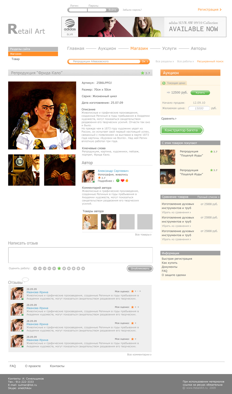 2. Дизайнером решено множество нестандартных задач, результатом чего стал уникальный интерфейс, который удобен пользователям, но акцентирует их внимание на продаваемых работах, а не на функциях сайта.