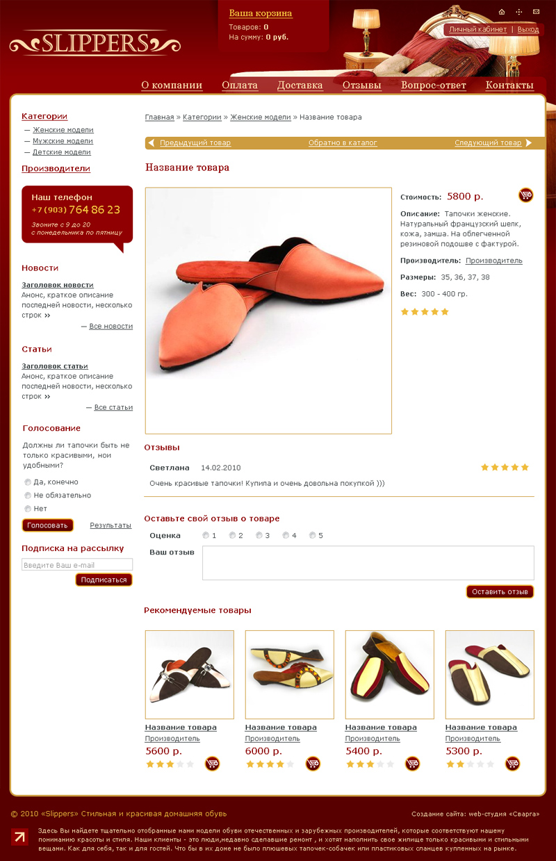 Я сразу созвонился-списался с ними. Обрисовал свои цели и задачи. Сразу мне был назначен персональный менеджер, который оперативно и с высокой долей профессионализма составил техзадание и договор. Все выполнялось строго по графику, никаких дополнительных работ (в виде разводок) не предлагалось. Устроило все: и разработанный дизайн, и техническая часть. Понимали меня с полуслова. Все это и есть Профессионализм с большой буквы. Очень рад, что нашел именно эту компанию. Очень всем благодарен: и другу, и Сварге. Алексей Сурага, руководитель проекта Slippers