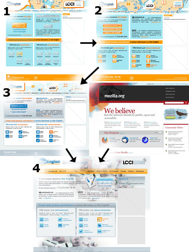 Только с 4-й итерации (после вдохновения дизайном Mozilla.org) был достигнут результат, который был представлен заказчику и оказался достаточно близким к финальному варианту.