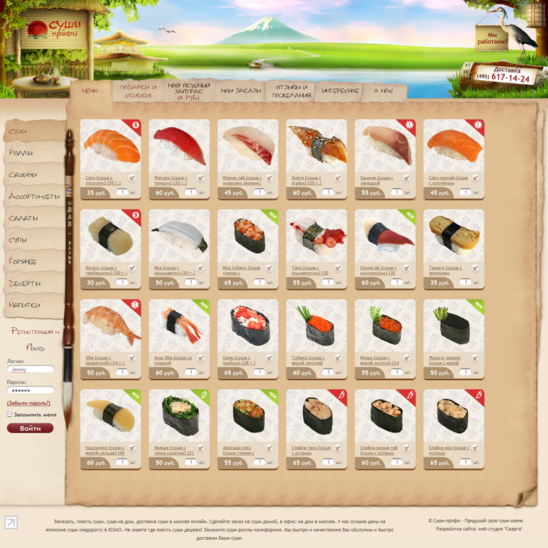 Отзыв Работали и продолжаем работать с командой веб-студии "Сварга" уже более полугода. Только положительные впечатления. Сделали сайт службы доставки суши, со сквозной интеграцией со специфическим софтом. Все проекты и доработки доводятся до конца, четко и грамотно. Рекомендую всем. Алексей Приезжев, генеральный директор ООО "Суши-Профи"