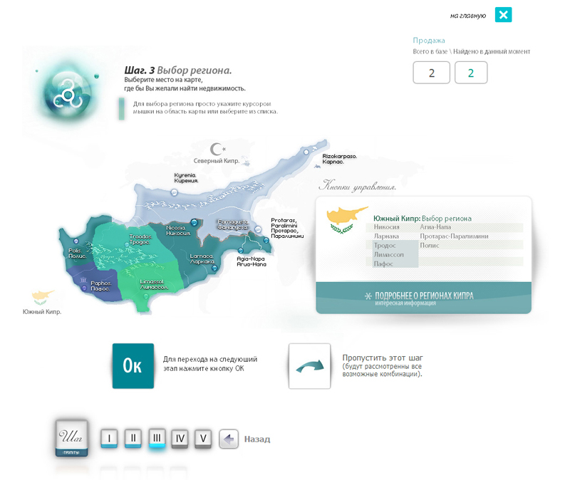4. Реализована возможность поиска объектов, как при помощи фильтрации их по отдельным критериям, так и используя пошаговую форму "Умный поиск". Она снабжена подробными описаниями, иллюстрациями и динамическими элементами заметно упрощающие задачу поиска для обычных пользователей.