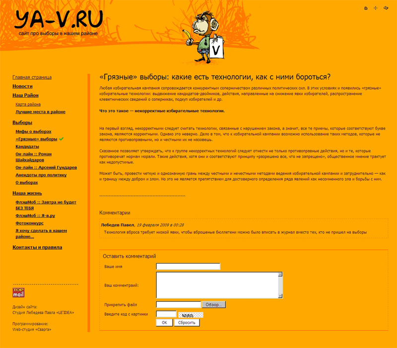 На сайте в доступной форме рассказано о том, какие бывают выборы, как применяют "грязные технологии", организовано общение с кандидатами в депутаты.